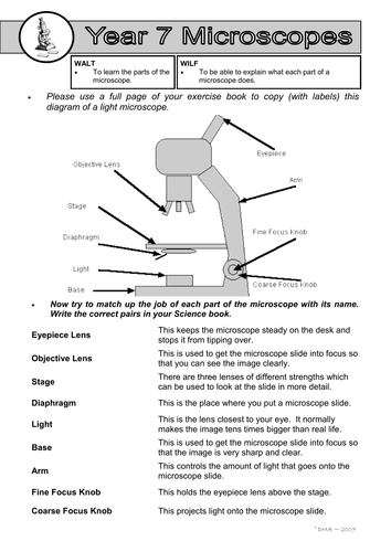 7Ac Microscope Labelling Worksheet | Teaching Resources The bundle includes six full lesson PowerPoints plus associated resources. My suggested teaching order: Life Processes, Plant and Animal Cells, Microscopes and Magnification, Microscopes and Slides, Specialised Cells, Tissues and Organs. **I have many other KS3 lessons and bundles available so please check out my shop, OnSpecScience.**