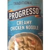 Calories in Progresso Traditional Creamy Chicken Noodle Soup and ... There are 120 calories in 1 cup (244 g) of Progresso Traditional Creamy Chicken Noodle Soup. Get full nutrition facts for other Progresso products and all your other favorite brands. ... There are 120 calories in 1 cup (244 g) of Progresso Traditional Creamy Chicken Noodle Soup. Calorie breakdown: 34% fat, 50% carbs, 17% protein. Related ...