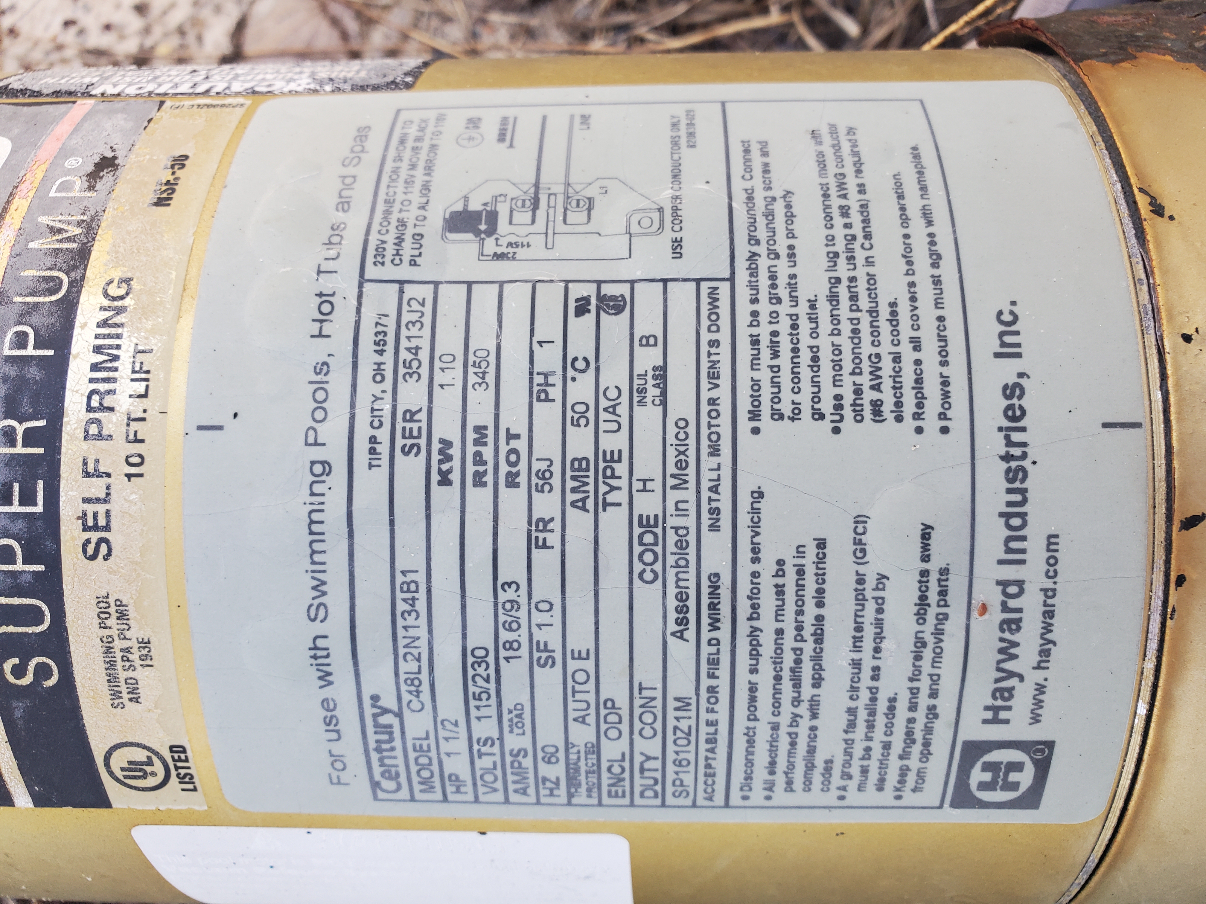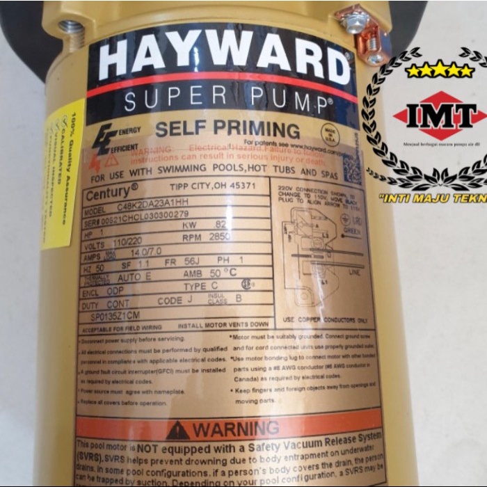 Hayward pool pump label