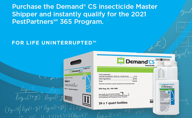 Demand CS Insecticide | Professional Pest Management | Syngenta Demand® CS insecticide offers up to 90 days of control of more than 30 pests including mosquitoes, ticks, fleas, ants and cockroaches. Featuring the power of iCAP™ technology, Demand CS easily adheres to pests' waxy cuticles as they travel along a treated surface, which helps ensure lasting control. Active Ingredient (s): Lambda-cyhalothrin