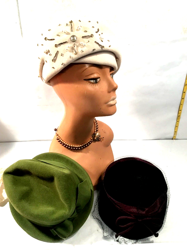 vintage hats for women 1950s. Union Made, Flowers And White Beads ... vintage hats for women 1950s. Union Made, Flowers And White Beads , Made In USA.