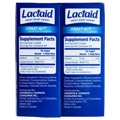 Lactaid Fast Act Lactose Intolerance Caplets - 60pk : Target Lactaid Fast Act Caplets work quickly to make foods containing dairy easy to digest for those with lactose intolerance or dairy sensitivity to lactose, so you can enjoy your plate. This lactase enzyme digestive supplement helps prevent the gas, bloating, and diarrhea due to lactose intolerance, that many people experience after eating foods ...