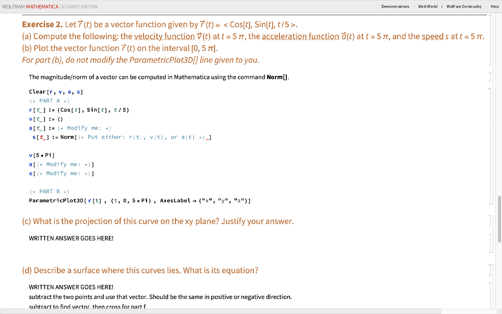 MATHEMATICA tutorial, Part 1.1: Plotting with arrows - Brown University If you want to plot the actual contour without arrows, then try something like the following: Traverse a cut. Traverse a cut. Now we show how to add arrows into the graph. ContourPlot [x^2 + y^2 == 9, {x, -2, 2}, {y, -2, -3.1}, AspectRatio -> 0.5] /. Curve with arrows. y /. MATHEMATICA TUTORIAL, part 1.1 - Brown University Return to the main page for the course APMA0340. 1.1. Plotting functions. One of the best characteristics of Mathematica is its plotting ability. It is very easy to plot a variety of functions using Mathematica. For a plot, it is necessary to define the independent variable that you are graphing with respect to.