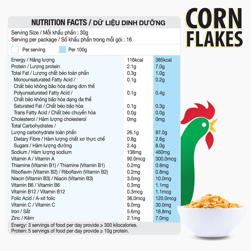 Kellogg's Corn Flakes Cold Breakfast Cereal, Original, 24 oz ... Kellogg's Corn Flakes is a classic family-favorite cereal, perfect for kids and adults. Made to enjoy by the bowlful, each serving contains a good source of 8 vitamins and minerals, is fat free, and contains no artificial colors or flavors; you can also use these flakes to prepare numerous sweet and savory dishes.