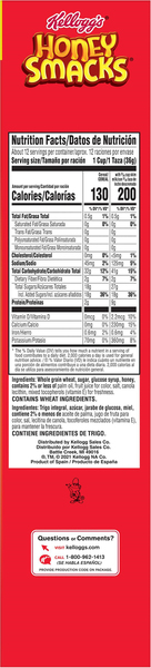 Kellogg's Honey-Smacks Breakfast Cereal - H-E-B 15.3 oz. $3.48 ($0.23/oz) Product description. A cereal you can dig, Kellogg's Honey Smacks makes for an indulgent treat. Each piece of puffed wheat has been enhanced with the delicious taste of honey, making Kellogg's Honey Smacks a great way to satisfy your sweet tooth. This wholesome cereal is crafted to help bring energy to your mornings ...