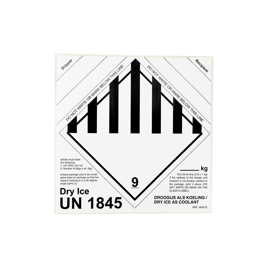 Class 9 Dry Ice UN1845 Label – Code V029/ICE - Labeline.com Class 9 Dry Ice UN1845 Label - Dangerous Goods Labels, Hazardous – 100x100mm √ Weather √ Marine √ Abrasion √ UV. Tested √ DG compliant. Warehouse UN1845 Class 9 Dry Ice Labels Dry Ice labels to use for shipping. ... Dry Ice Labels UN1845 Class 9 ... Permanent Adhesive; Eco-Friendly Print; Made in the U.S.A. – Ready to Ship Now.