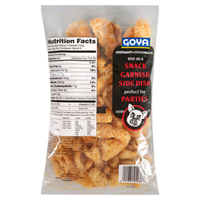 › products › chicharrones-originalChicharrones Original - Mission Foods With these original pork rinds, you get the perfect mix of both in every bite. So grab a bowl for you and your friends to enjoy, or pick up a bag for an on-the-go snack just for you. We don’t judge. See Full Nutrition Facts Available Sizes 4oz Related Products Chicharrones Original Chicharrones Picante Flavor Reviews for Chicharrones Original Calories in 4505 Pork Rinds and Nutrition Facts - FatSecret Pork Rinds Nutrition Facts Serving Size 1/2 oz (14 g) Amount Per Serving Calories 80 % Daily Values* Total Fat 6.00g 8% Saturated Fat 2.000g 10% Trans Fat - Cholesterol 15mg 5% Sodium 200mg 9% Total Carbohydrate 0.00g 0% Dietary Fiber - Sugars - Protein 7.00g Vitamin D - Calcium - Iron - Potassium - Are Pork Rinds Healthy? Crispy pork rinds are high in protein and fat. They're carb-free, which makes them appealing to those on a low carb diet. However, they're very low in any beneficial vitamins or minerals. A... Calories in Pork Rinds - Calorie, Fat, Carb, Fiber, & Protein Info Pork Rinds (1 gram (s)) Calories: 6, Fat: 0g, Carbs: 0g, Protein: 1g Show full nutrition information Bag - Pork Rinds (1 serving) Calories: 120, Fat: 7g, Carbs: 0g, Protein: 3g Show full nutrition information Bbq Pork Rinds (1 serving) Calories: 40, Fat: 3g, Carbs: 0g, Protein: 4g Show full nutrition information Pork Rinds Hot & Spicy (1 serving)