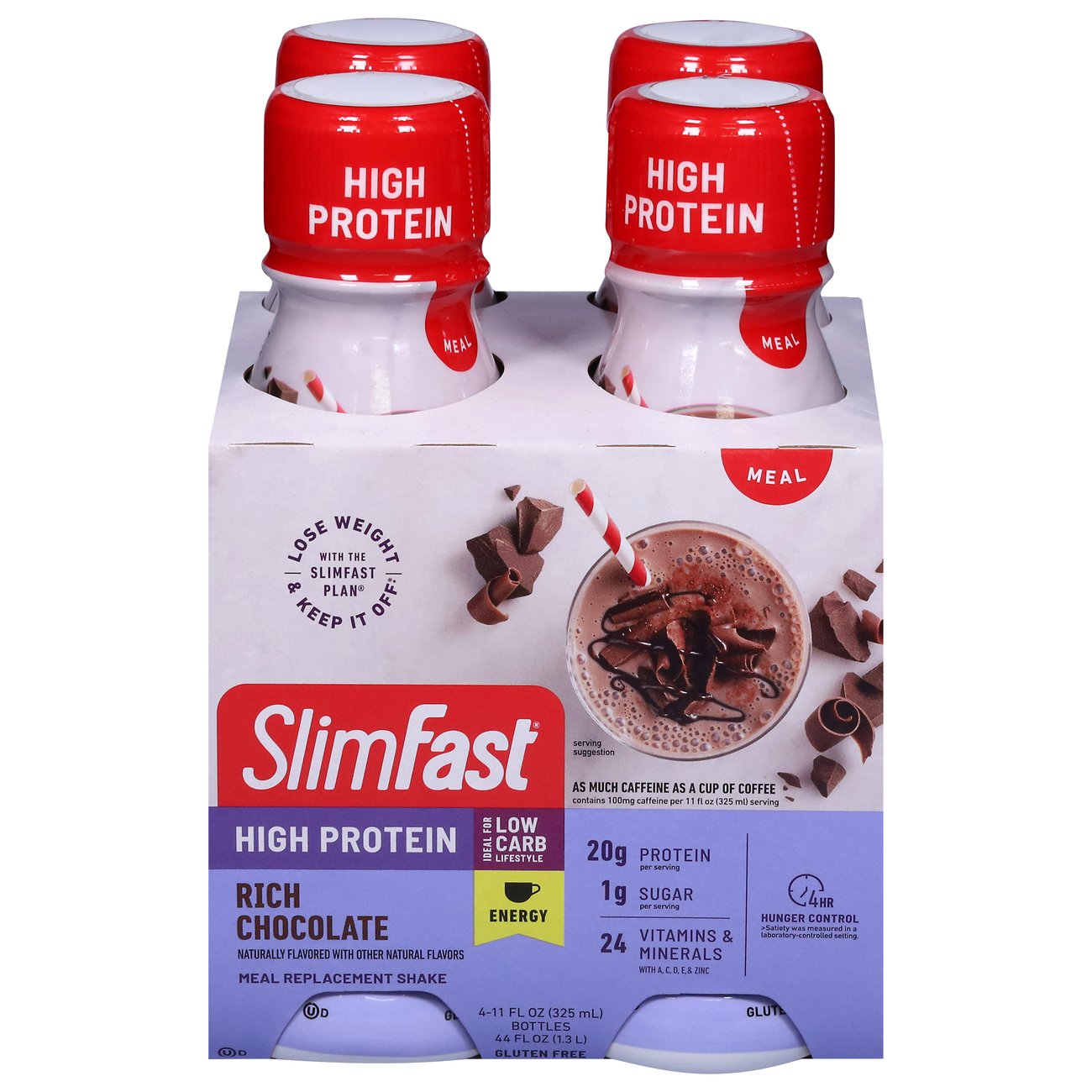 Amazon.com: SlimFast Advanced Nutrition High Protein Meal Replacement ... Curbs hunger - SlimFast advanced Nutrition shakes are an exceptional meal replacement product that curbs hunger for up to four hours Packed with protein, vitamins & minerals - the advanced Nutrition shakes contain 20g of protein, 1g of sugar along with 24 essential vitamins and minerals.