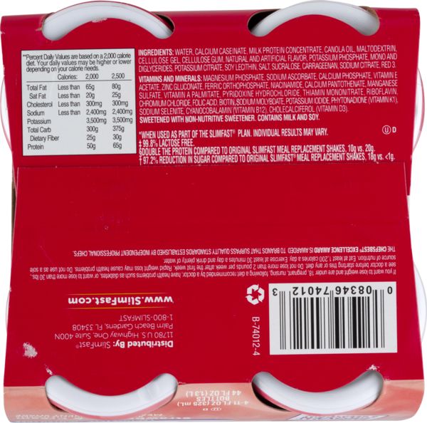 SlimFast Diabetic Weight Loss Chocolate Milkshake Shake Mix SlimFast Diabetic Weight Loss Formula Shake Mix puts delicious back on the menu! Nutritional Information † Per Shake As Prepared With Fat Free Milk ‡ Contains 7g Total Fat Per Serving *When used as part of the SlimFast Plan (a reduced-calorie diet, regular exercise, and plenty of fluids). Read label prior to use. Advanced Nutrition - Shop SlimFast SlimFast High Protein Nutrition Smoothie Mixes. from $16.99. 4.5. (44) SlimFast | A Weight Loss And Diet Plan That Works SlimFast | A Weight Loss And Diet Plan That Works Shop Now for Home Delivery or Free Pick Up SlimFast Same Difference :30 Watch on How Does SlimFast Work? It's Easy as 1-2-3. 1 One Sensible Meal 2 Replace Two Meals A Day 3 Indulge in Three Snacks Nobody Gives You More Ways To Lose Than SlimFast 20g Protein & 1g Sugar Fasting Fit For You Slim Fast Ingredients | livestrong Here's a breakdown of the ingredients in SlimFast. Fat-free milk Water Sugar Canola oil Fructose Maltodextrin Milk protein concentrate Cellulose gel Cellulose gum High-fructose corn syrup Natural and artificial flavors Mono and diglycerides Potassium phosphate Soy lecithin Calcium phosphate Gellan gum Carrageenan Sucralose Acesulfame potassium