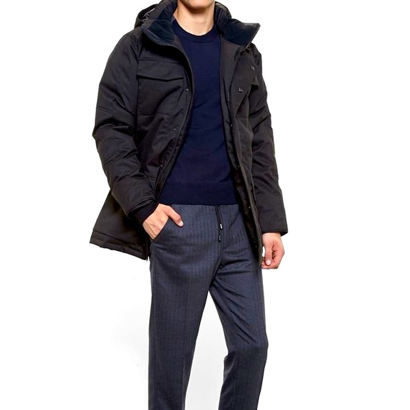 Canada Goose Black Label Windermere Coat | Coats | Harry Rosen Canada Goose Black Label's Windermere Coat is a luxuriously comfortable way to combat the elements. The mid-thigh length design boasts a removable hood and plenty of handy pockets lined with sueded tricot for extra warmth.