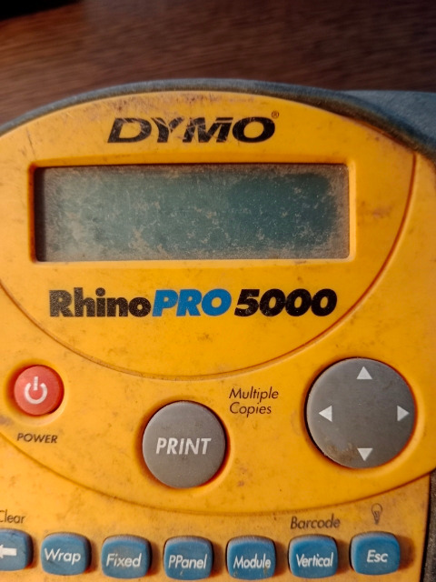 Dymo Rhino 5000 Label Tapes The Rhino 5000 in it's day was the flagship Dymo Industrial Label Printer. Many of them are still operating faultlessly, even after 10+ years of service. Here's a complete list of the compatible labels for the Rhino 5000 which takes ¼", ⅜", ½" and ¾" Dymo Rhino label tapes.